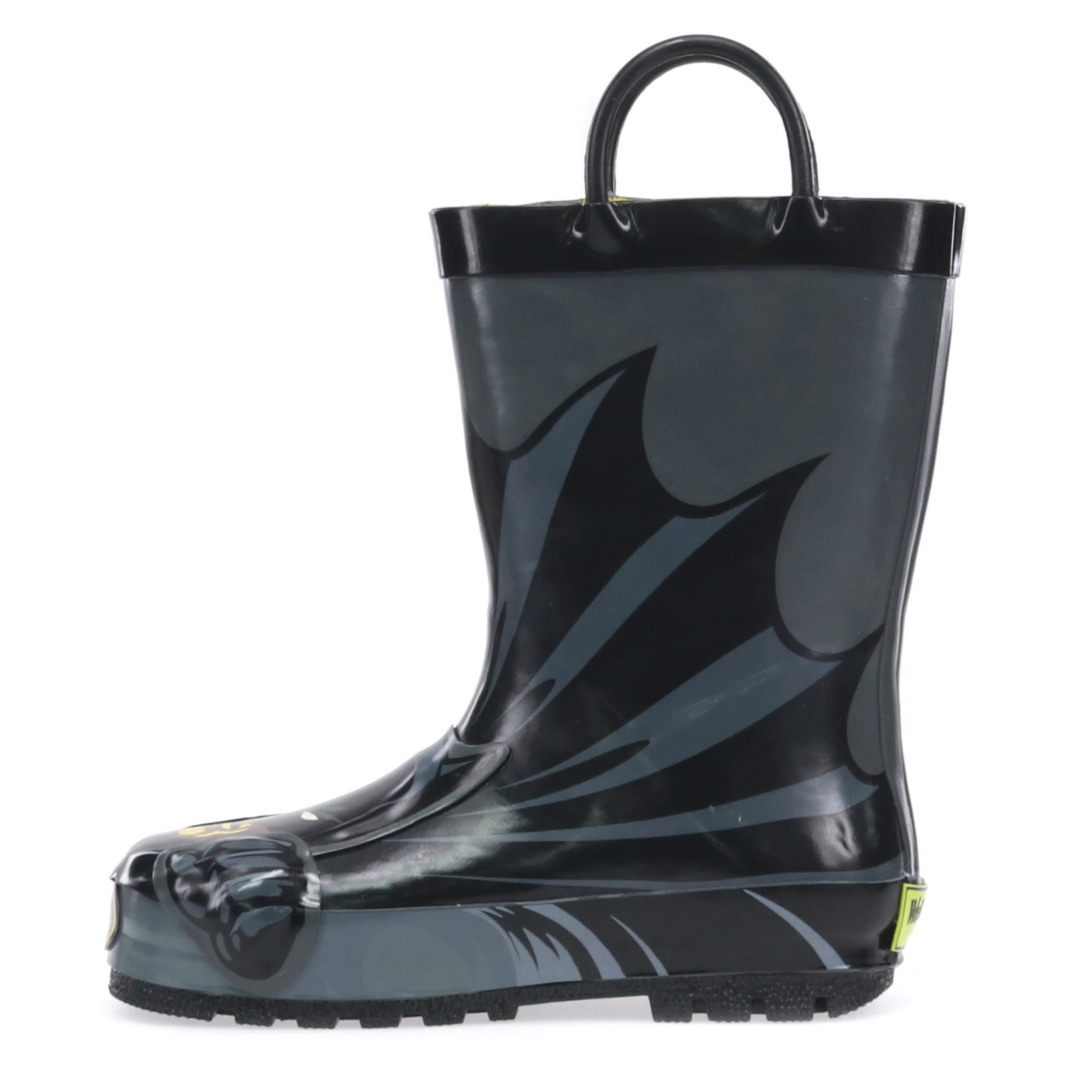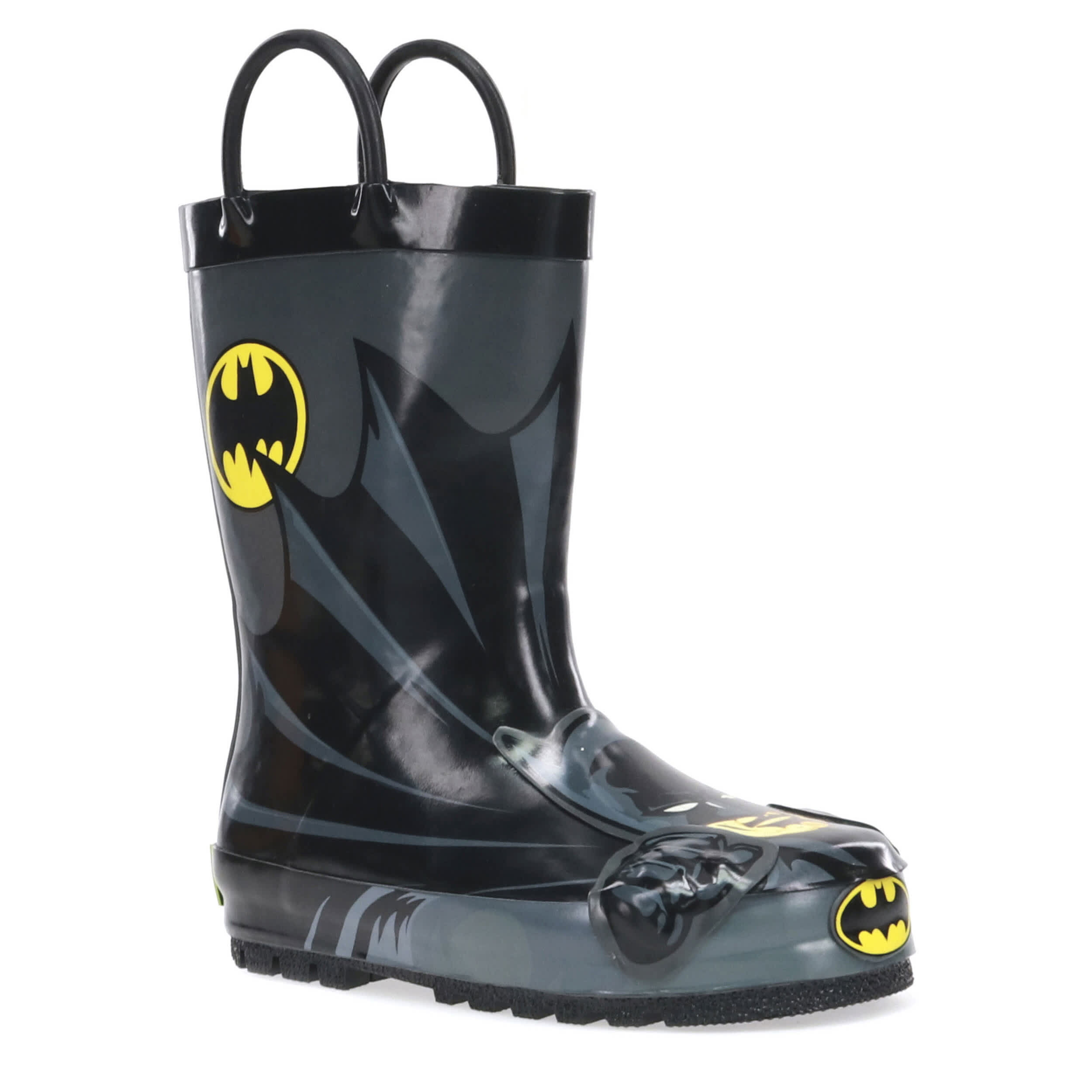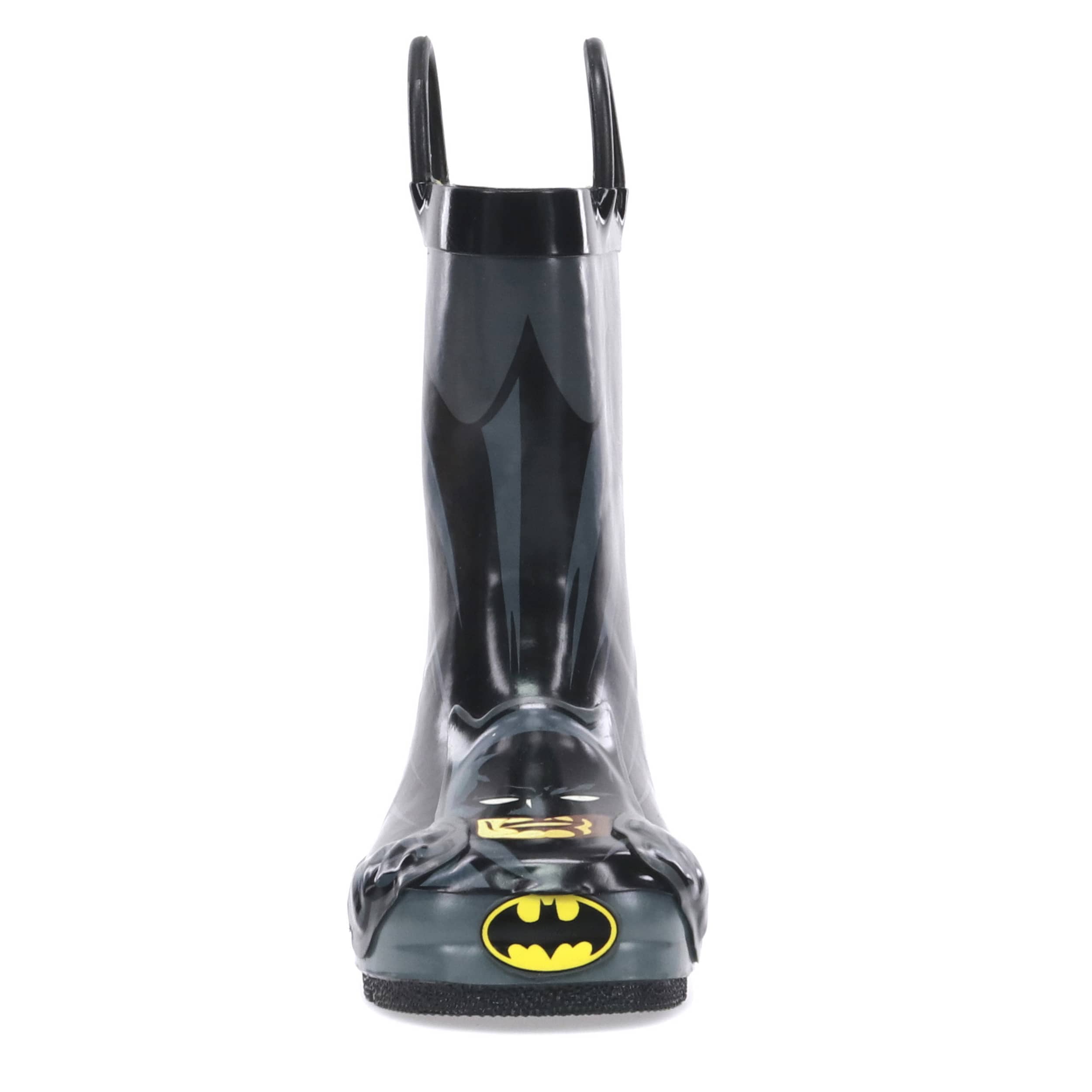 He'll be ready to protect Gotham City when the rain hits in the Western Chief Batman Everlasting infant boys' rain boot. With a waterproof high quality rubber upper featuring a Batman graphic with removable cape, this pull-on rain boot keeps little toes dry. The dual pull handles make short work of entry, while the polyester & cotton lining absorbs moisture to soothe his little foot.