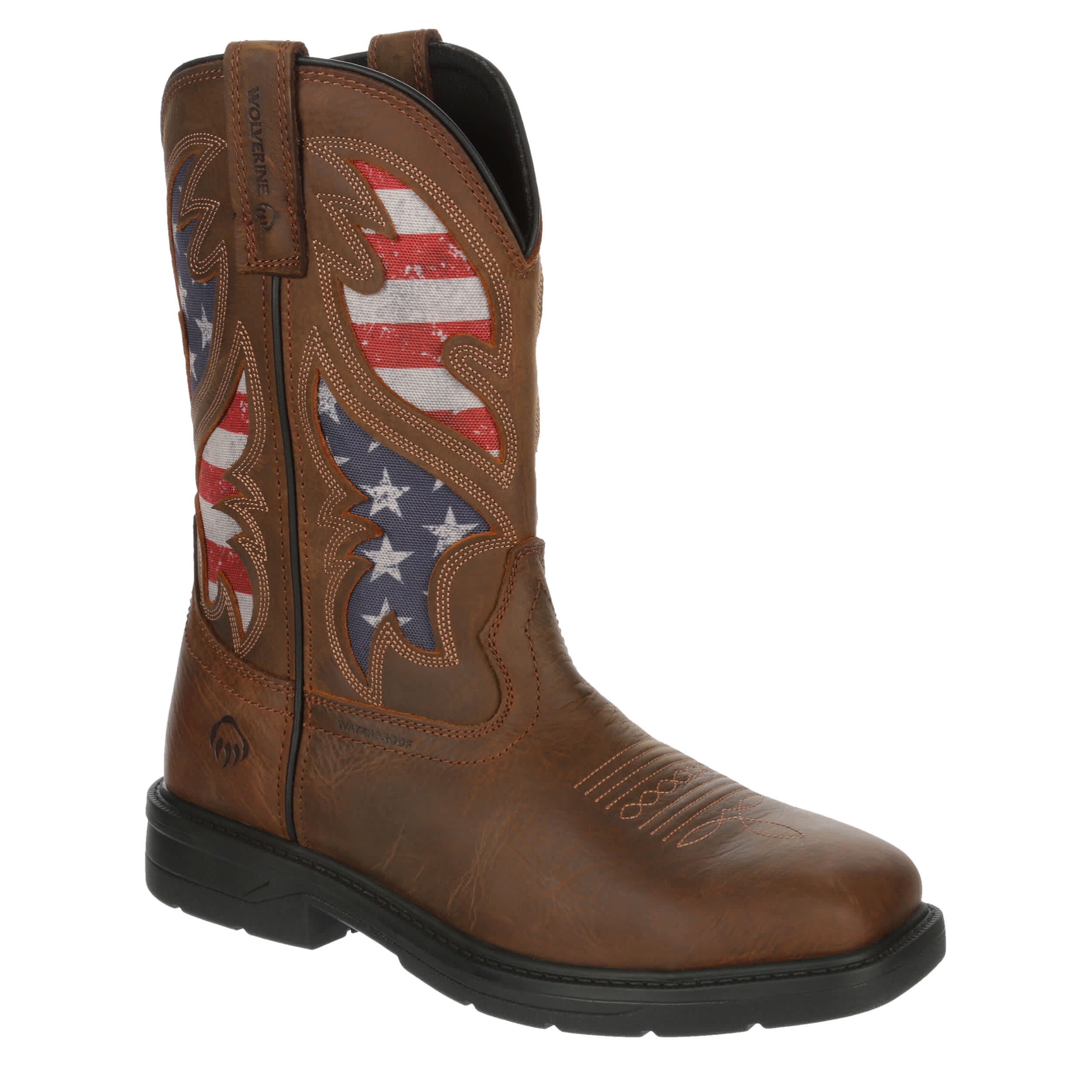 Grit and celebrate the USA in the Wolverine Rancher Flag Steel-Toe Wellington work boot. You're protected by the nylon shank and steel toe, while the mesh lining keeps feet fresh. Waterproof leather means you don't break until the task is complete.