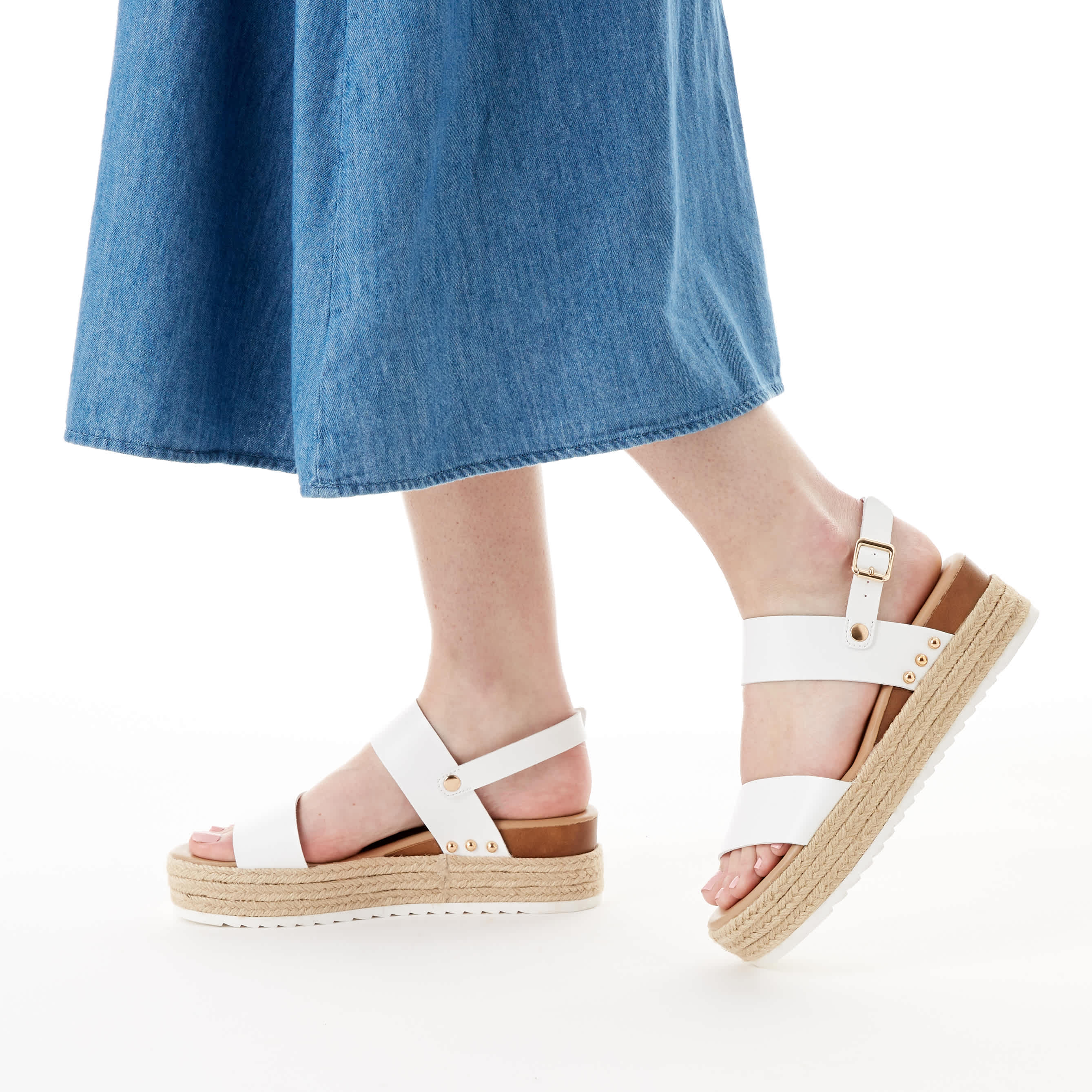 Strut into summer in the Xappeal Amelia women's wedge sandal. With a synthetic upper and metallic accents, these white wedge sandals offer a breezy approach to summer fashion with an espadrille midsole. The lightly padded footbed soothes your feet while the synthetic traction sole keeps you stable.