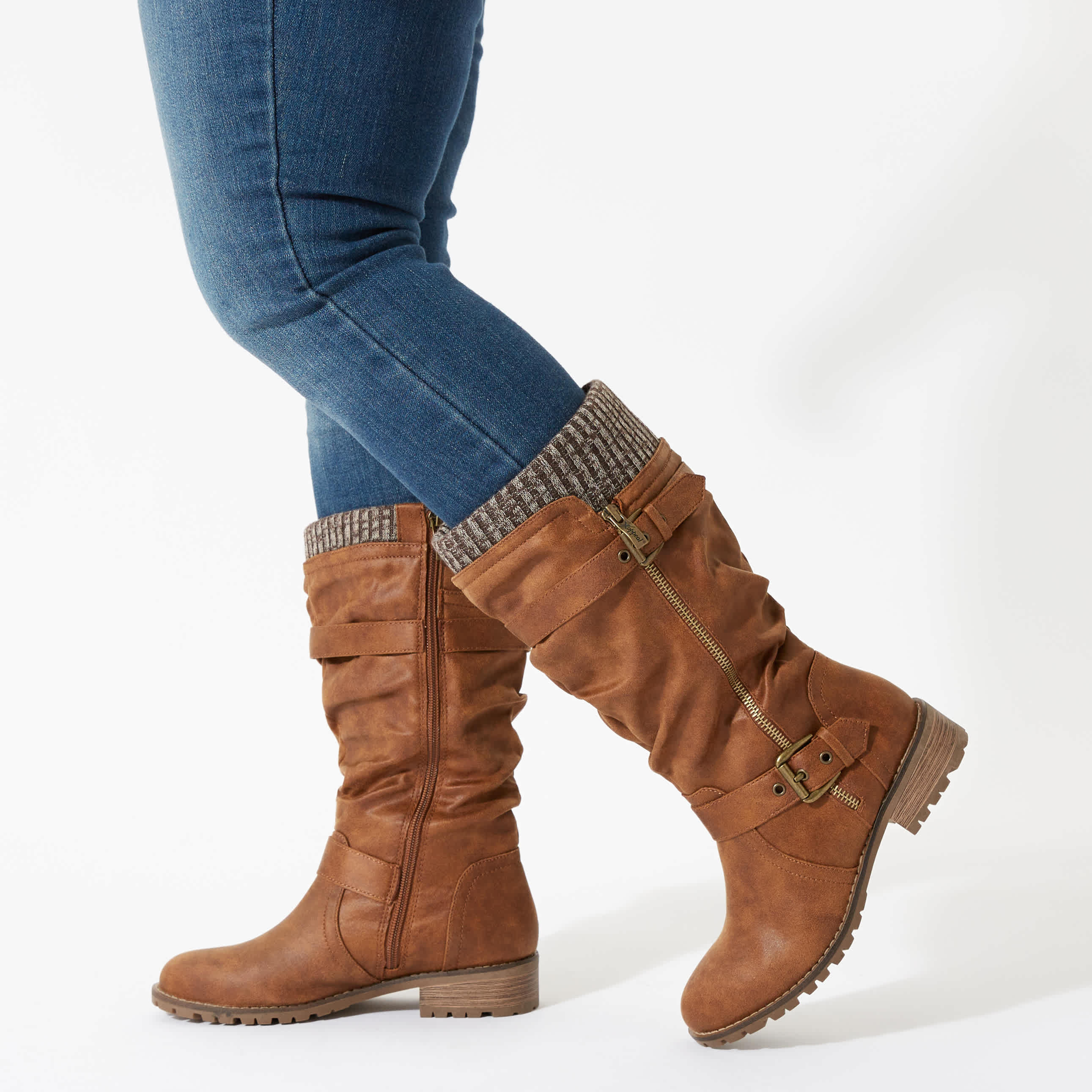 Look fashionable in the frosty air with the Chelsey boot from Xappeal. Featuring a faux suede upper with a sweater-inspired collar to for style, these brown boots make your wardrobe pop. The durable lug-style outsole supports every step while the buckle details add cuteness.