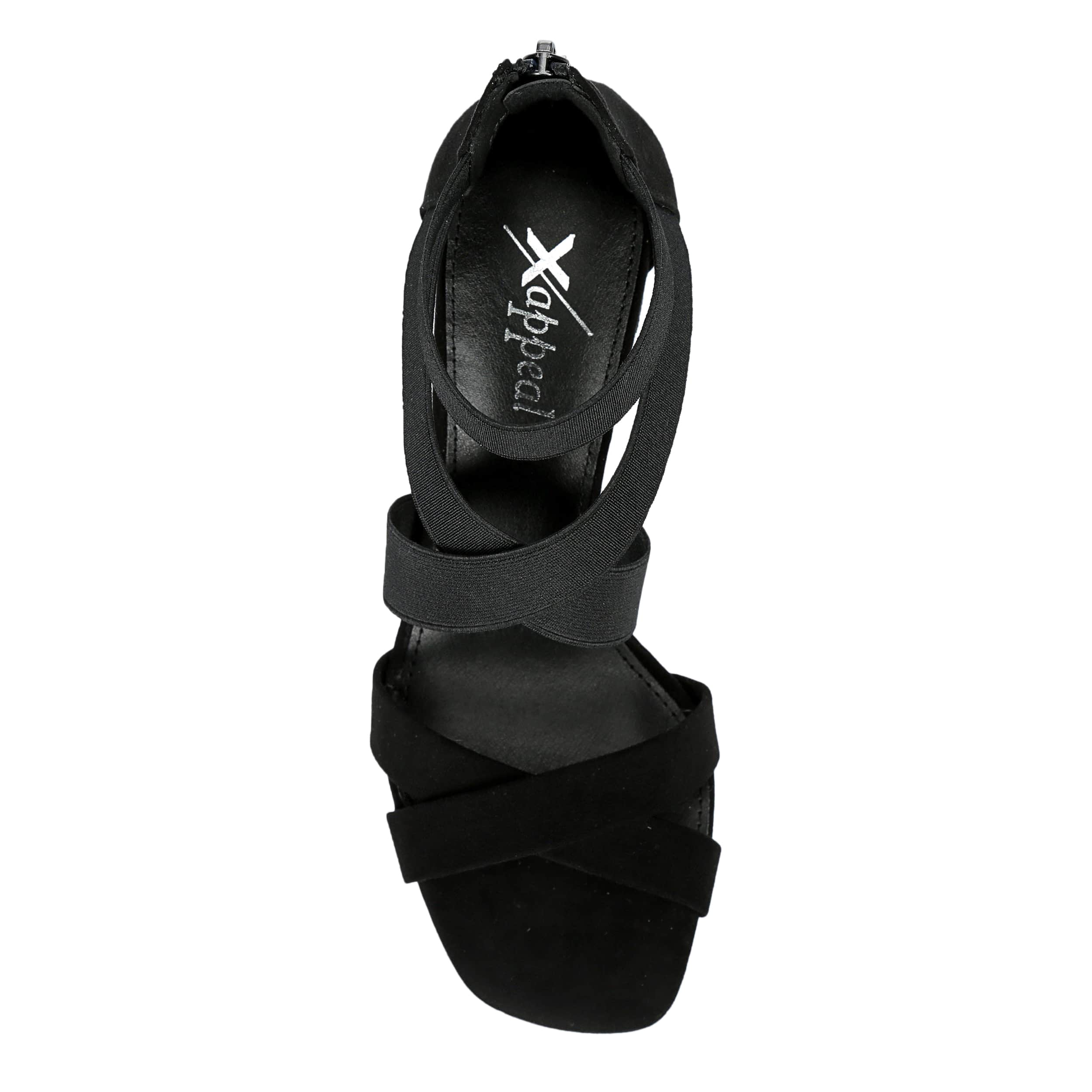 Glamorous and ready for a night out, grab the Xappeal Elline women's sandal to accompany you. Its comfy elastic upper with multiple straps and easy back zipper keep your foot secure, and the single sole pairs with a 3! heel for the perfect amount of height.