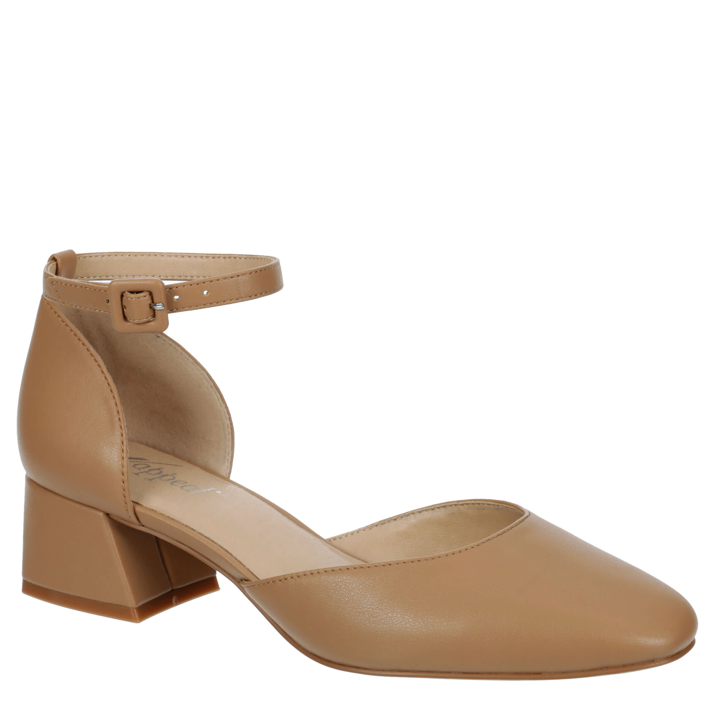 Your style dominance doesn't stop with the Kylene pump from Xappeal. Featuring a faux leather upper with a slightly squared toe and cutout designed heel, this ankle buckle strap shoe transitions from summer into fall. The footbed cushions your foot, while the low heel adds just enough lift.