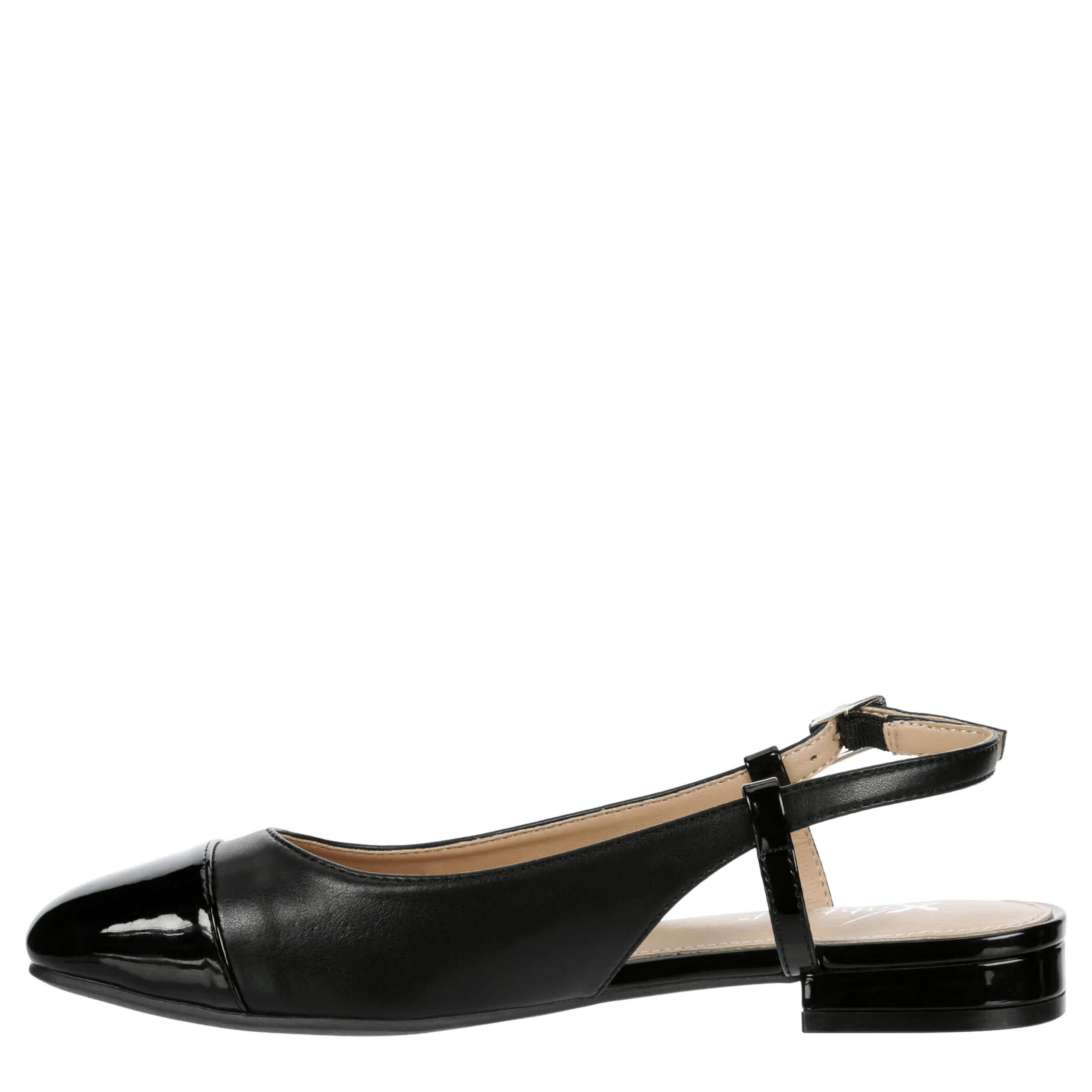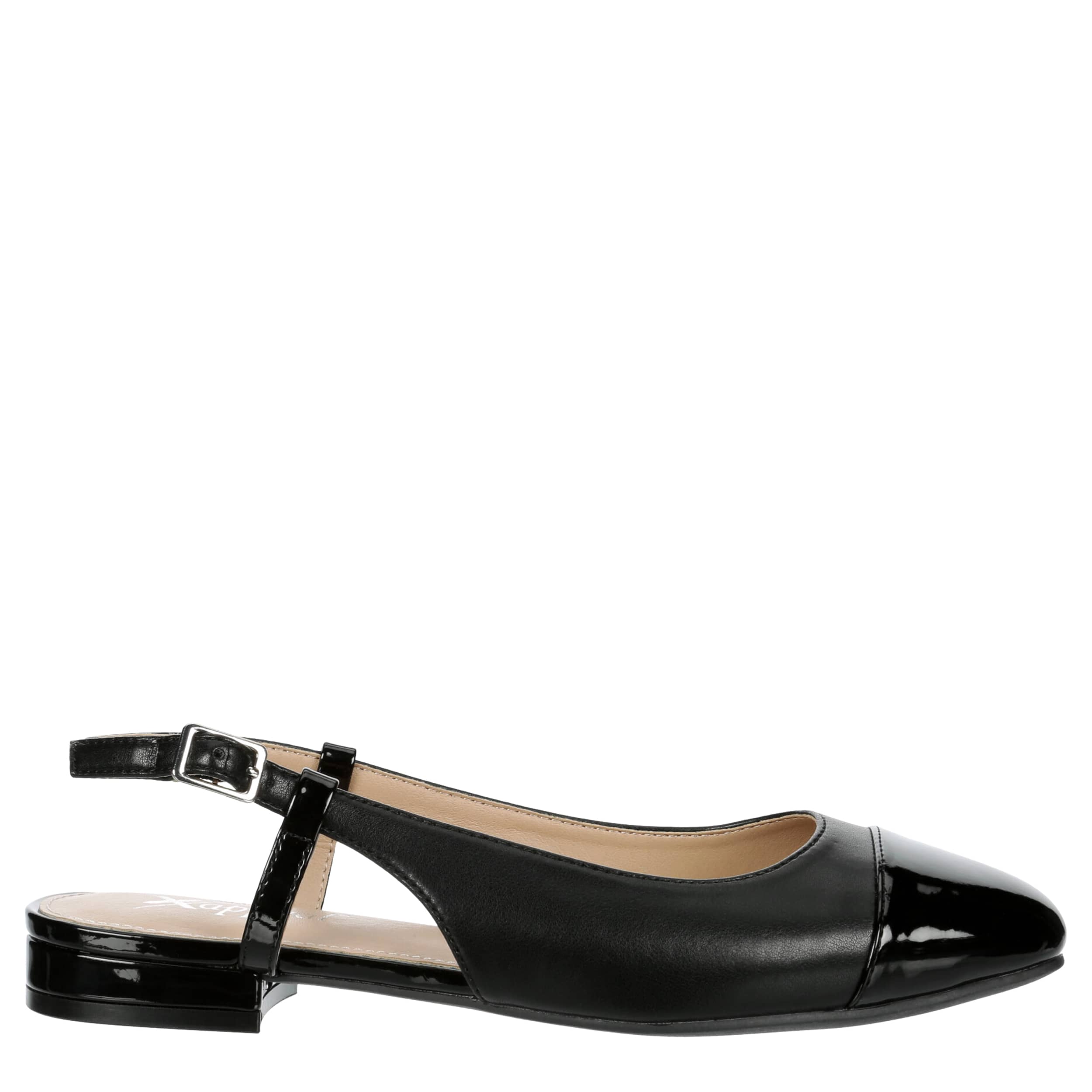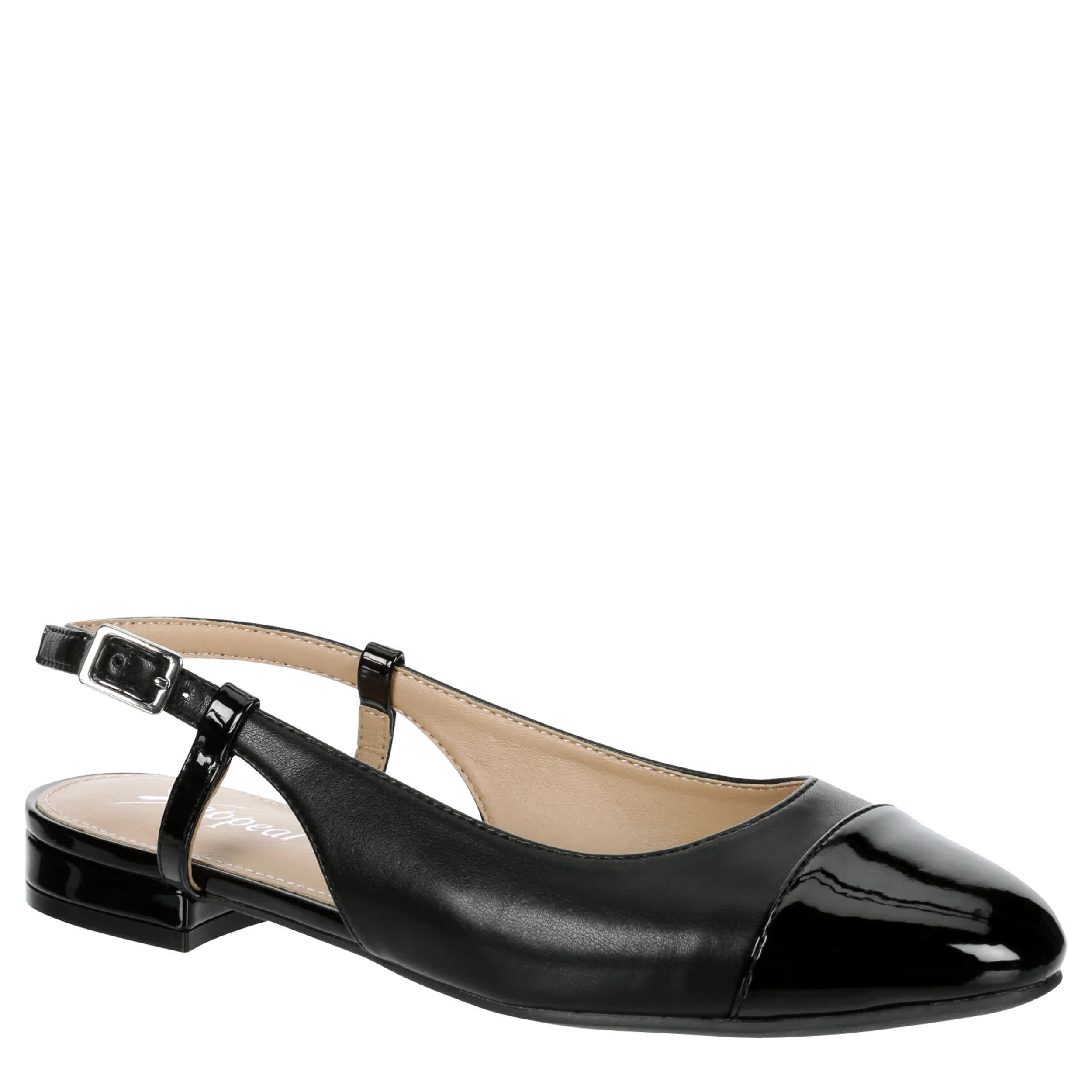 Complement your work look in the Ophelia women's flat from Xappeal. With a faux leather upper featuring a patent leather cap toe, this slip-on is easy to style. Let the lightly padded footbed soothe your foot while you head to the office or run errands.
