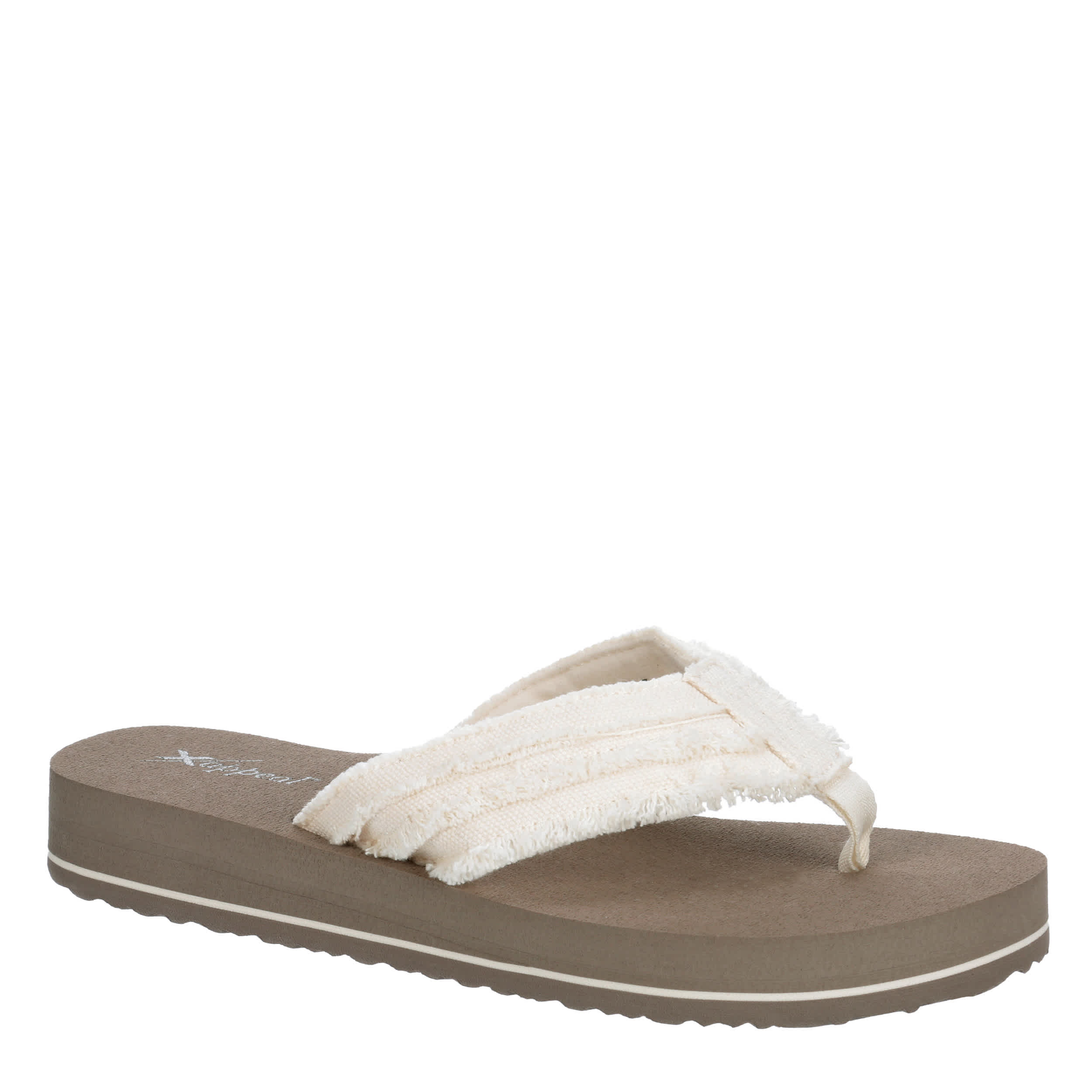 Welcome summer back in the casual style of the Xappeal Peyton women's sandal. With a three-band fabric upper featuring a thonged toe post for a secure fit, this flip flop is always warm weather ready. The thick synthetic sole makes them perfect for anywhere you travel.