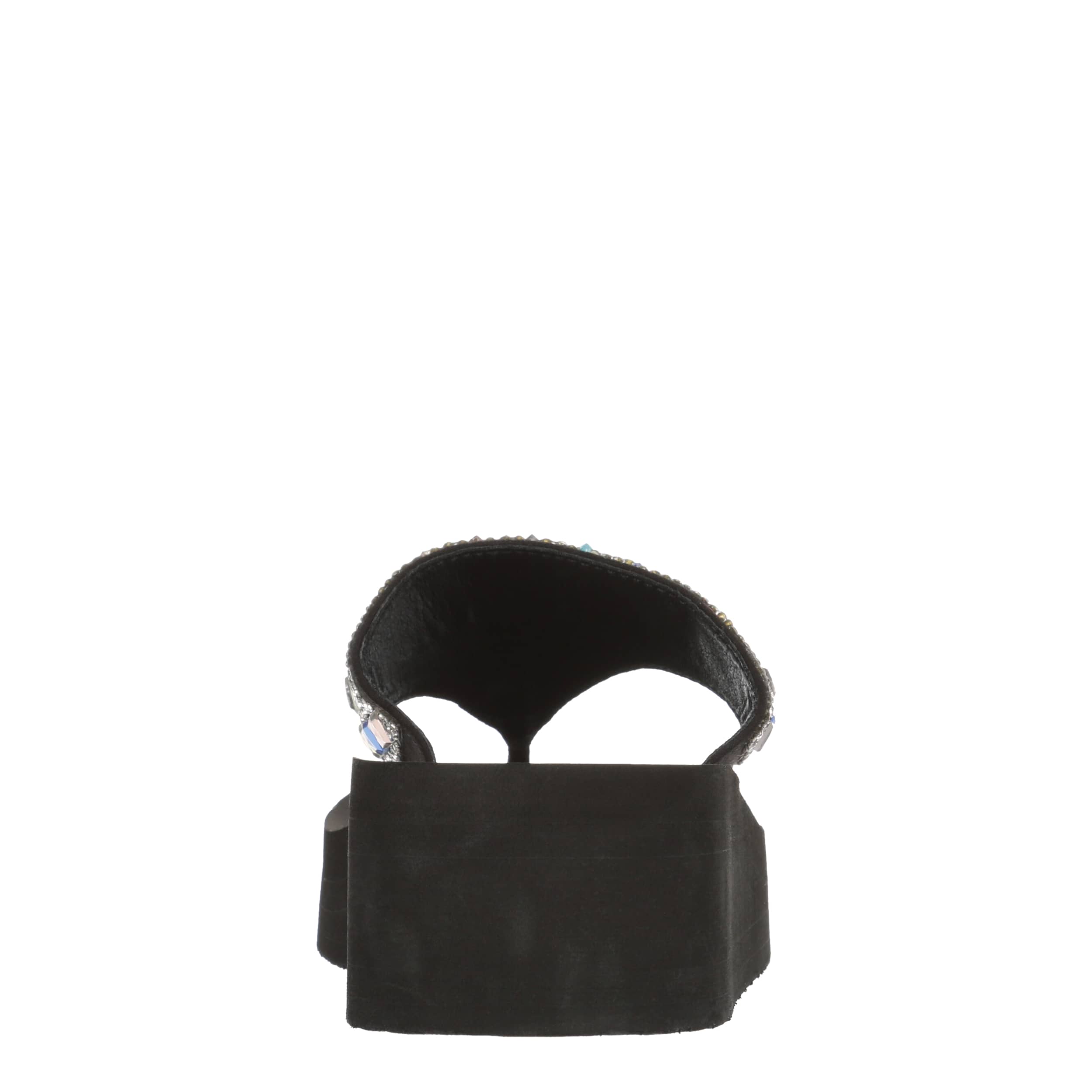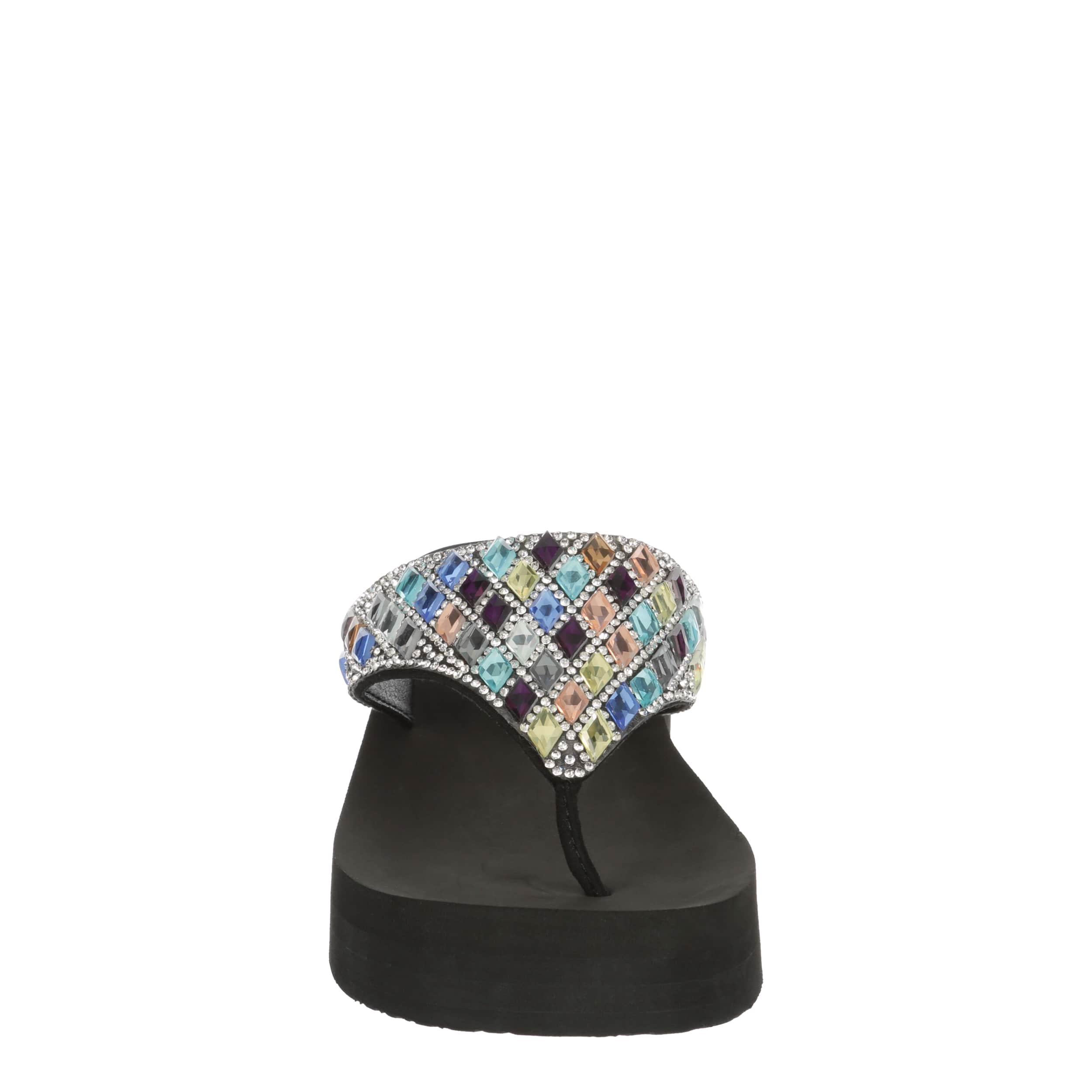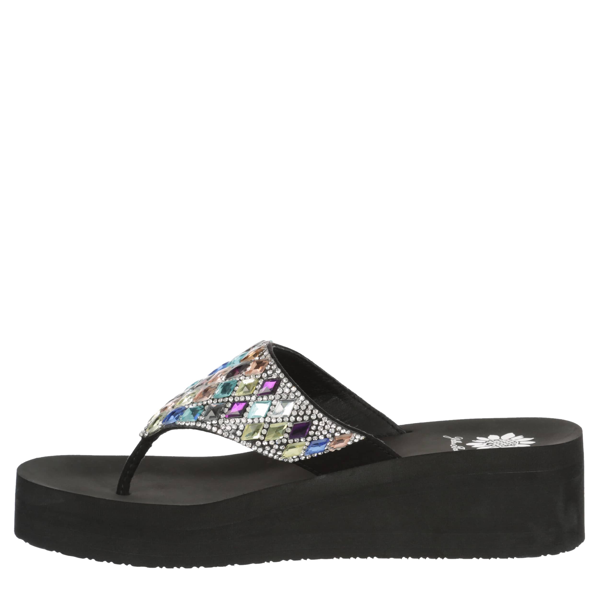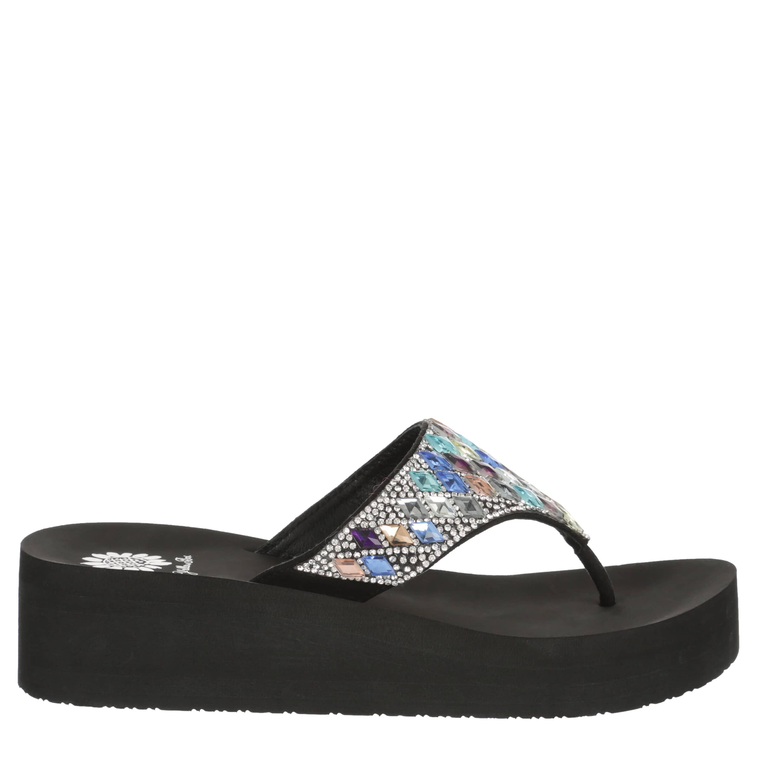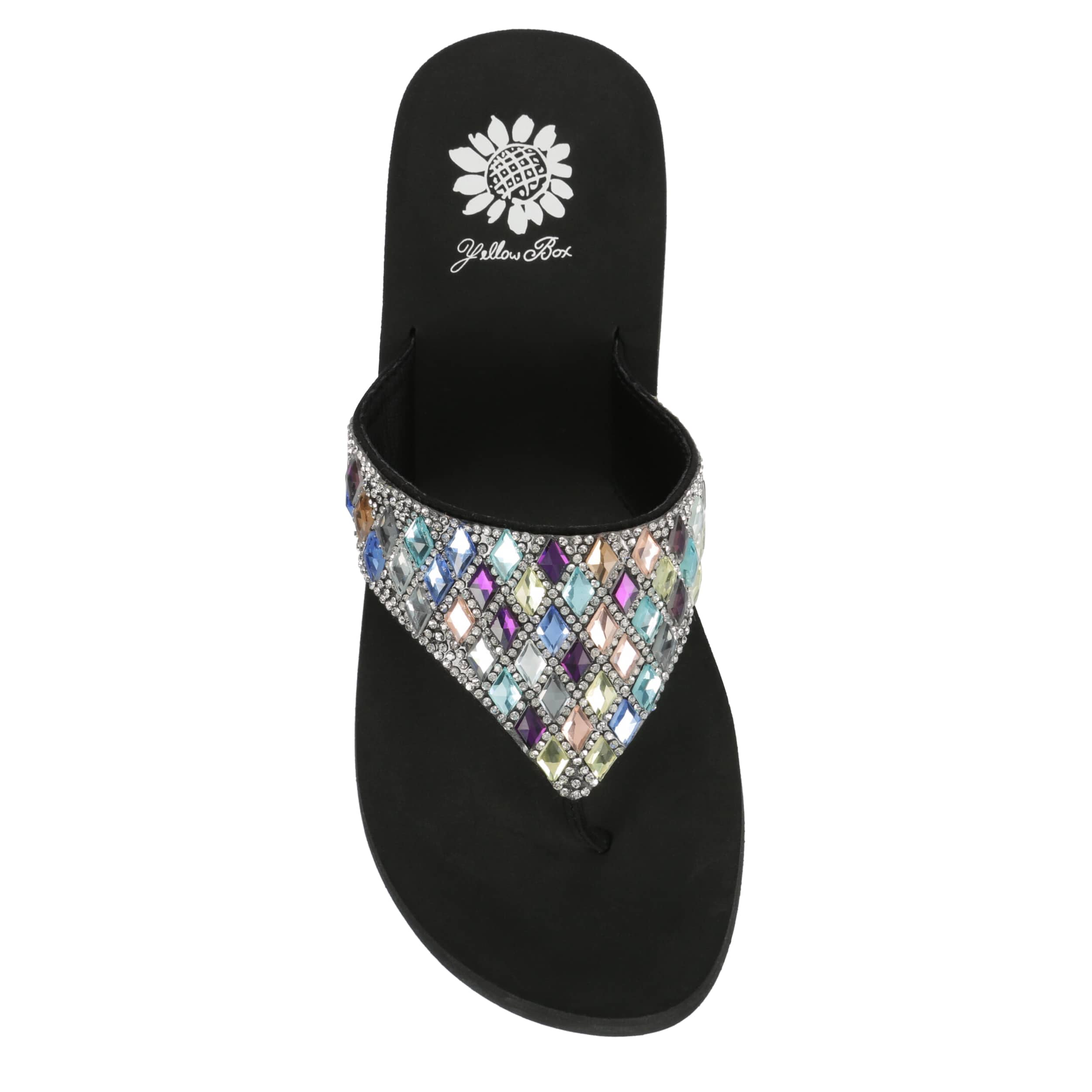 Delight in the shine of the Padmell women's flip flop sandal from Yellow Box. Featuring a kaleidoscopic diamond sequined overlay, this dazzling thong can be dressed down or up. The contoured footbed cradles your foot with comfort, while the heel adds stable lift.