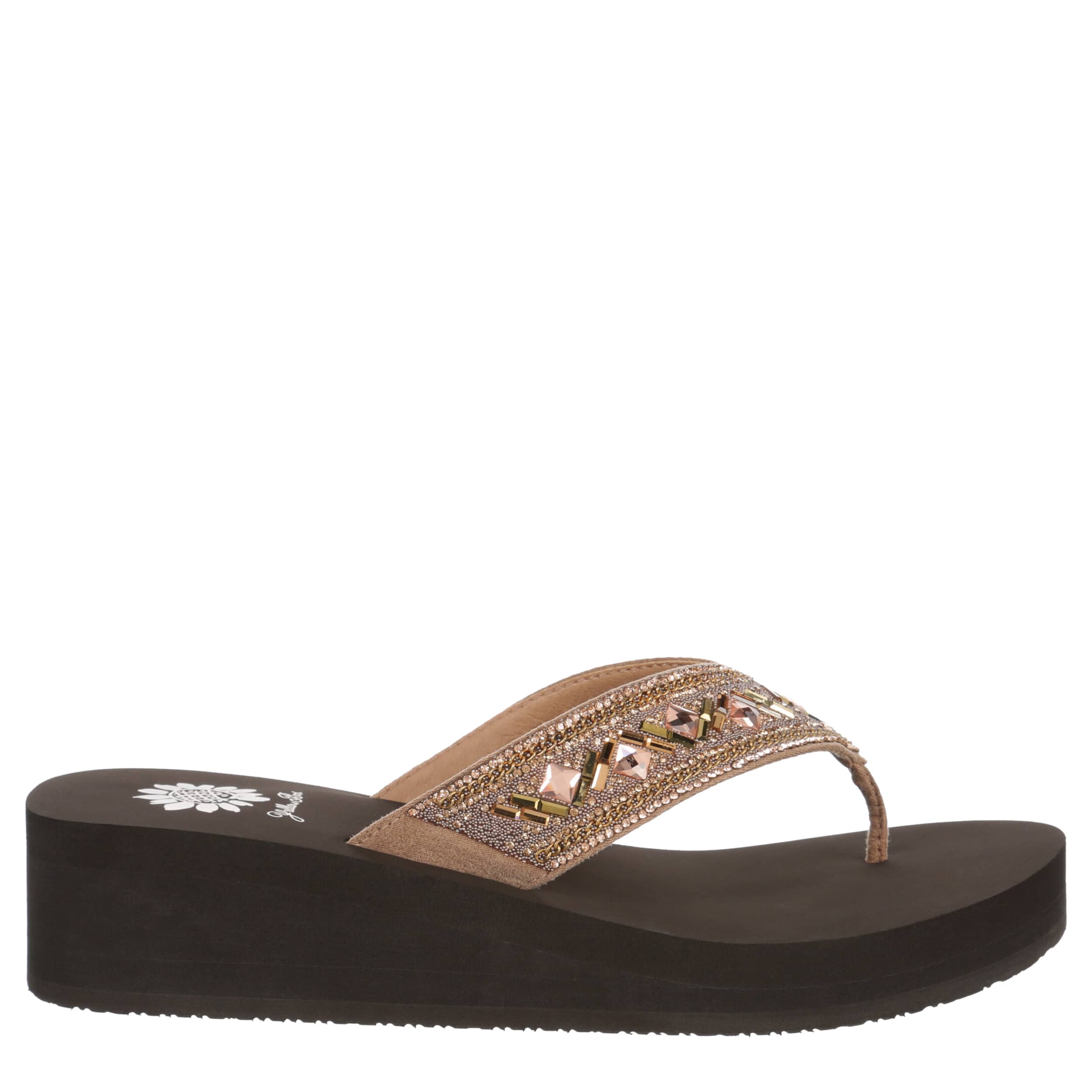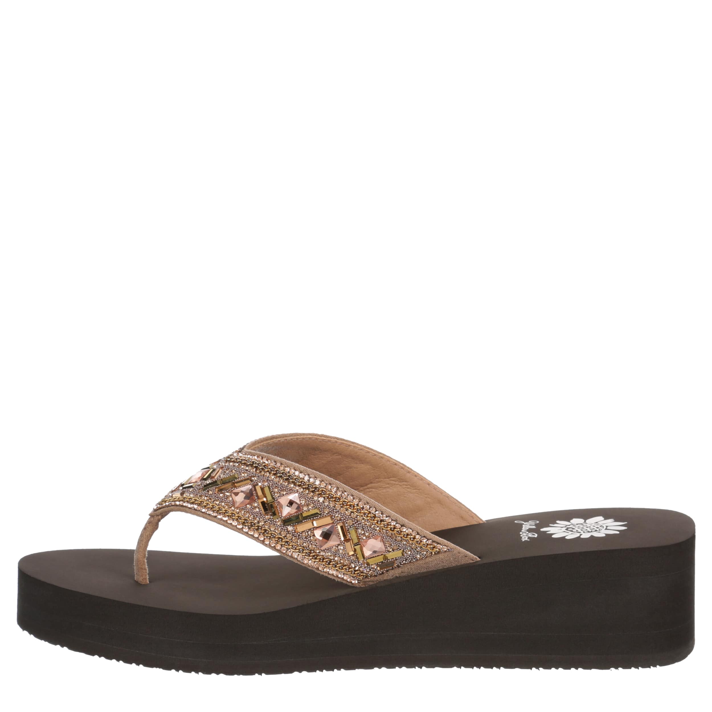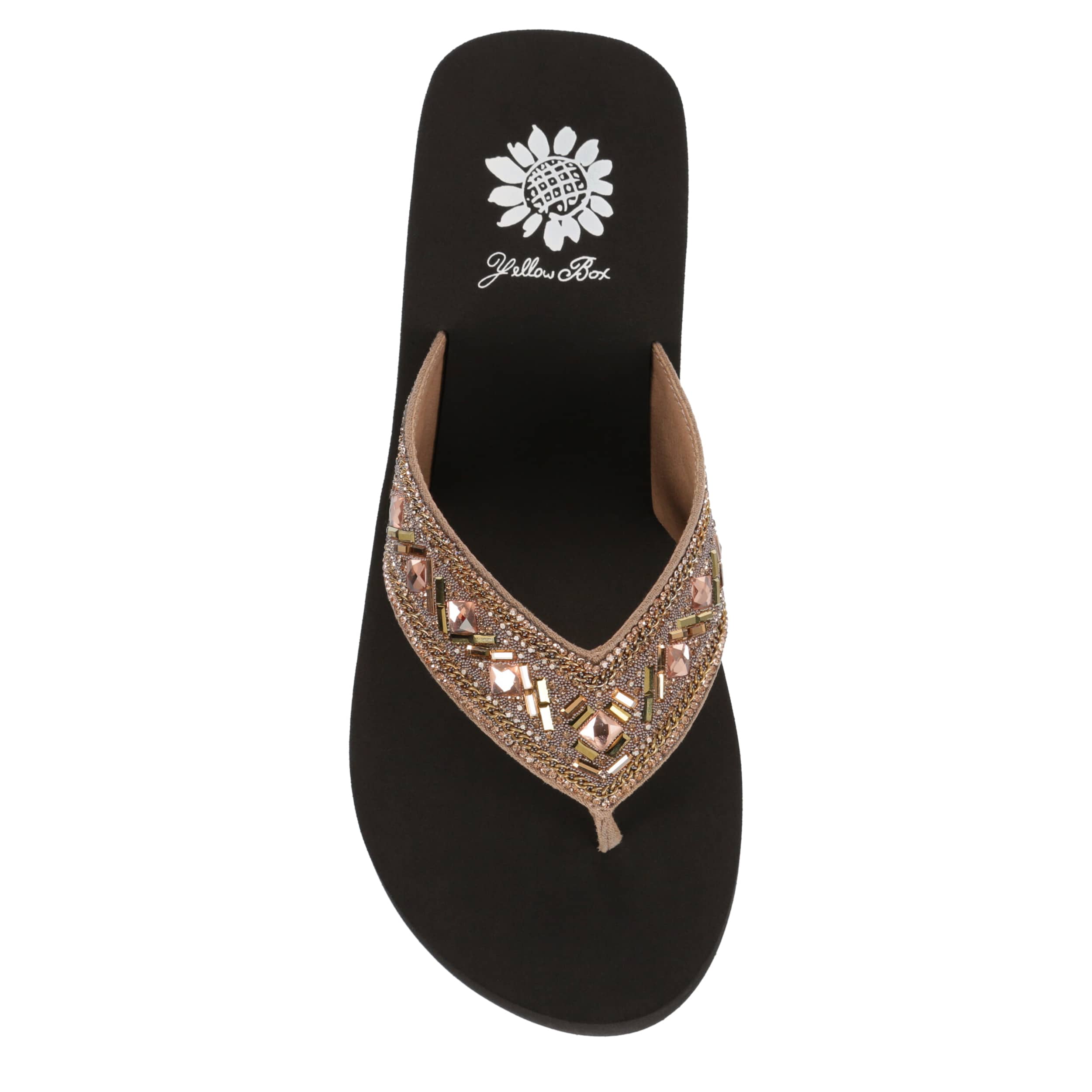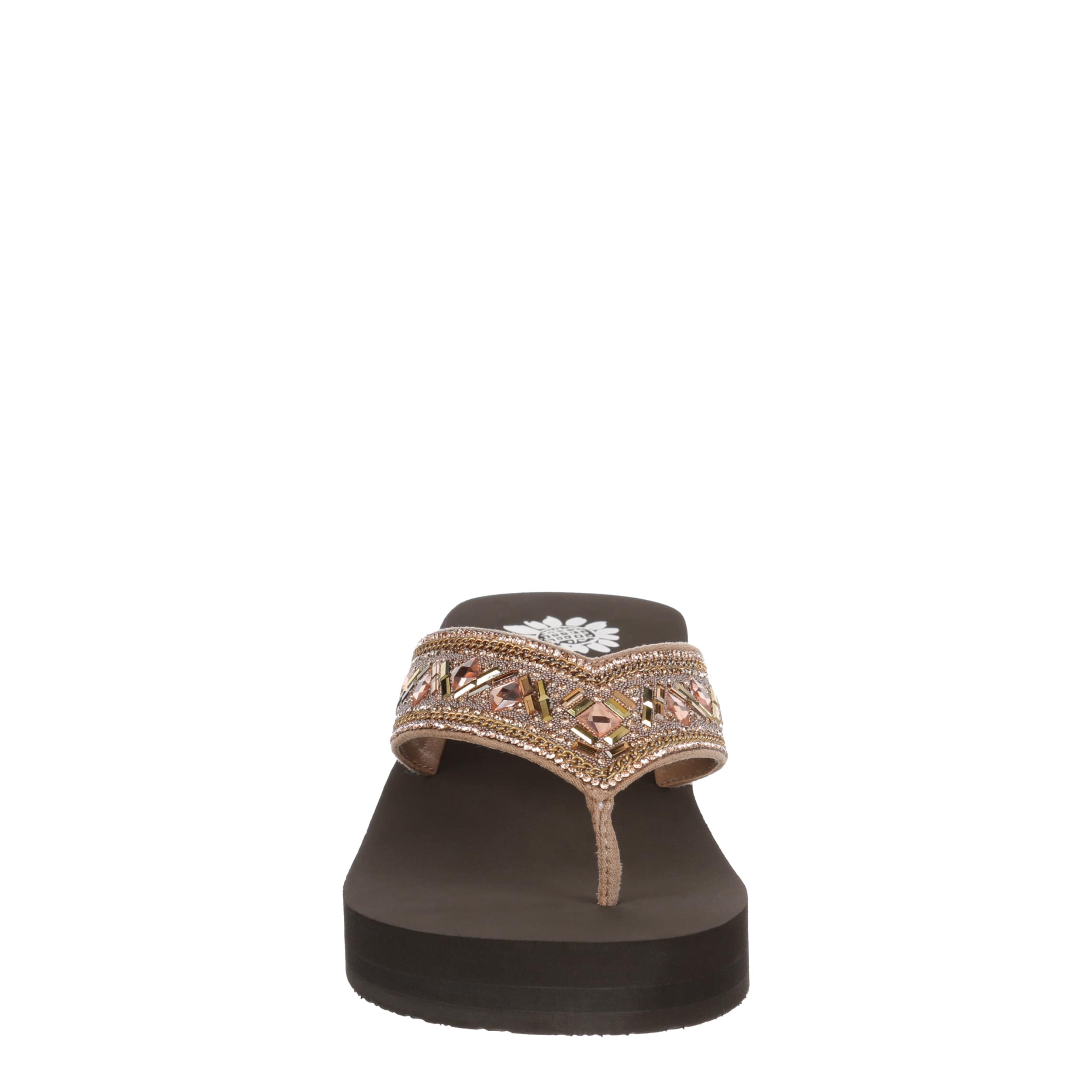 Dress up your summer in the Saverina women's flip flop sandal from Yellow Box. Featuring an intricate beaded design, this fancier thong works well for beach weddings or similar parties. The contoured footbed cradles your foot with comfort, while the heel adds stable lift.